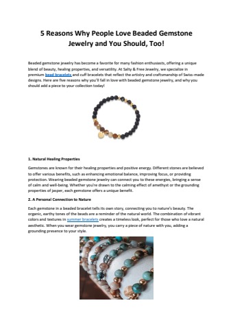 Beaded gemstone jewelry is a favorite for many, offering unique beauty, healing properties, and versatility. With vibrant, natural gemstones, these pieces bring positive energy and elevate any outfit. Whether for daily wear or special occasions, beaded jewelry adds a personal touch. Made with eco-friendly materials and timeless designs, it’s no wonder people can't get enough of these meaningful, stylish accessories.