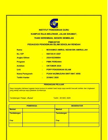RPH PENDIDIKAN ISLAM TAHUN 6 BIDANG AKIDAH TAJUK AL HADI 2025