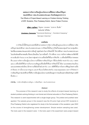 งานวิจัยบทความ โครงงาน สกร.พระประแดง เรื่องผลของการจัดการเรียนรู้แบบโครงงานที่มีต่อการคิดแก้ปัญหาของนักศึกษา กศน.อำเภอพระประแดง จังหวัดสมุทรปราการ