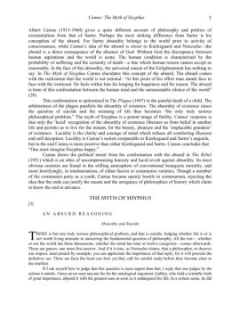 In The Myth of Sisyphus Camus elucidates this concept of the absurd. ... of great importance, abjured it with the greatest ease as soon as it endangered his life.