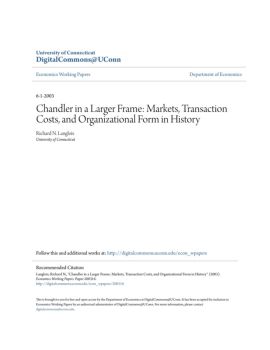 Department of Economics Working Paper Series Chandler in a Larger Frame: Markets, Transaction Costs, and Organizational Form in History Richard N. Langlois