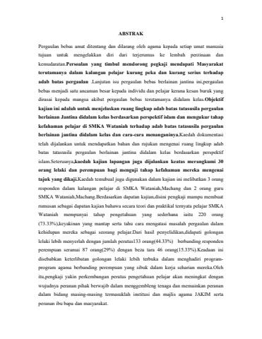 TAHAP KEFAHAMAN PELAJAR TERHADAP BATAS TATASUSILA ADAB PERGAULAN ANTARA PELAJAR LELAKI DENGAN PEREMPUAN DIDALAM KELAS.KAJIAN:PELAJAR SMKA WATANIAH