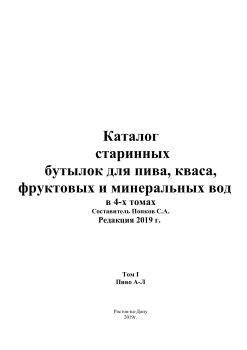 A catalogue of Antique Russian Beer and Mineral Water Bottles - Volume I compiled by Sergey Popkov - 2019 Edition