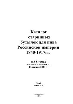 CATALOGUE OF RUSSIAN BEER BOTTLES 1840-1917 - VOLUME I
