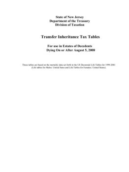 State of New Jersey . Department of the Treasury . Division of Taxation . Transfer Inheritance Tax Tables . For use in Estates of Decedents . Dying On or After August ...