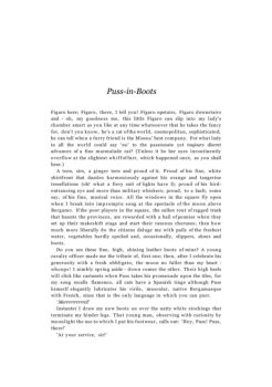 PUSS-IN-BOOTS 171 'Up to my balcony youn, Puss!g ' He lean outs i,n hi nightshirts offerin, encouragemeng as I swint g succinctly up th façadee forepaw, on as ...