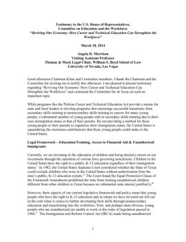1 Testimony to the U.S. House of Representatives, Committee on Education and the Workforce “Reviving Our Economy: How Career and Technical Education Can Strengthen the
