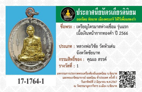 17 หลวงพ่อวิชัย วัดหัวเด่น จังหวัดชัยนาท 1764-1