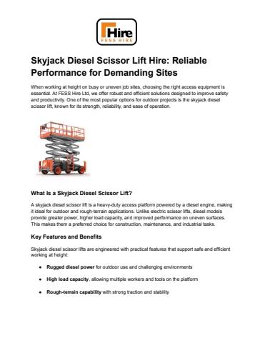 Skyjack Diesel Scissor Lift Hire_ Reliable Performance for Demanding Sites
