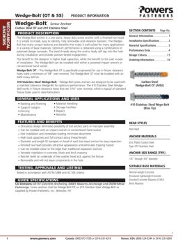 Wedge-Bolt®(OT&SS) PRODUCTINFORMATION 1 www.powers.com Canada:(905)673-7295or(514)631-4216 PowersUSA: (800)524-3244or(914)235-6300 f SECTIONCONTENTS PageNo.