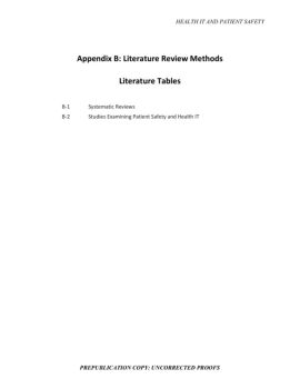HEALTH IT AND PATIENT SAFETY PREPUBLICATION COPY: UNCORRECTED PROOFS Appendix B: Literature Review Methods Literature Tables B-1 Systematic Reviews