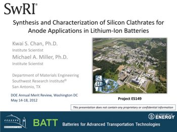 Synthesis and Characterization of Silicon Clathrates for Anode Applications in Lithium-Ion Batteries Kwai S. Chan, Ph.D. Institute Scientist