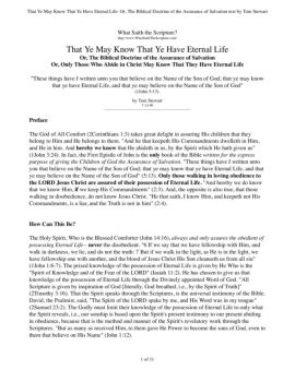 What Saith the Scripture? http://www.WhatSaithTheScripture.com/ That Ye May Know That Ye Have Eternal Life Or, The Biblical Doctrine of the Assurance of Salvation