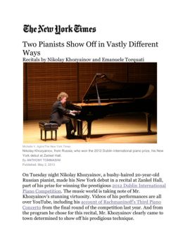 Two Pianists Show Off in Vastly Different Ways Recitals by Nikolay Khozyainov and Emanuele Torquati Michelle V. Agins/The New York Times Nikolay Khozyainov, from ...