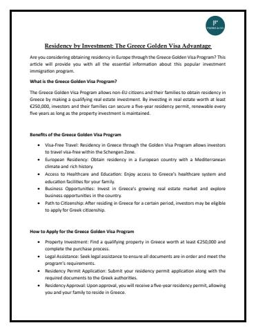 We offer access to Greece’s Golden Visa Program, one of Europe’s most attractive residency-by-investment opportunities. Through a minimum real estate investment of €250,000, we help investors and their families secure five-year renewable residence permits in Greece, granting visa-free travel across the Schengen Zone. We guide you through every step — from property selection and legal documentation to residence application and renewal. With Greece’s rich culture, stunning landscapes, and favorable lifestyle, we make it easy for you to enjoy both a sound investment and European residency. We are your trusted partner in achieving global mobility and financial freedom.
