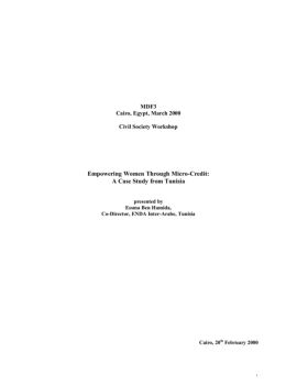1 MDF3 Cairo, Egypt, March 2000 Civil Society Workshop Empowering Women Through Micro-Credit: A Case Study from Tunisia presented by Essma Ben Hamida,