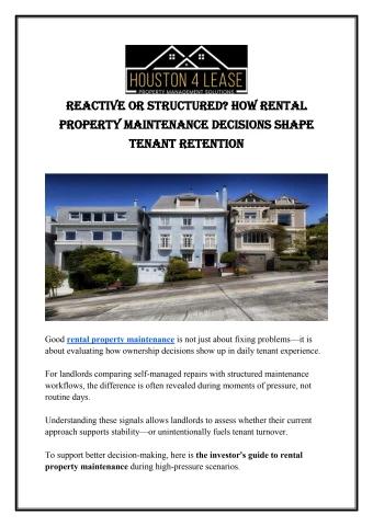 Reactive or Structured? How Rental Property Maintenance Decisions Shape Tenant Retention