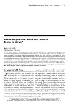 Faculty Reappointment, Tenure, and Promotion: Barriers for ...