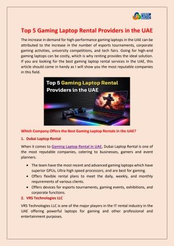 Top 5 Gaming Laptop Rental Providers in the UAE
