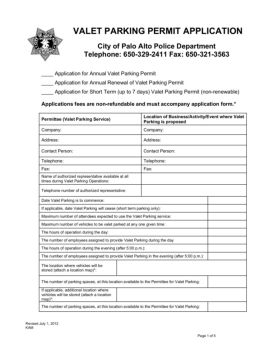 VALET PARKING PERMIT APPLICATION - City of Palo Alto