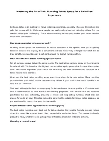 The best tattoo numbing spray isn't just for tattoo studios. Its versatile formula can also relieve other skin issues like eczema, insect bites, hemorrhoids, and minor burns. This makes it a handy product to have, whether you're getting inked or treating small skin irritations at home.