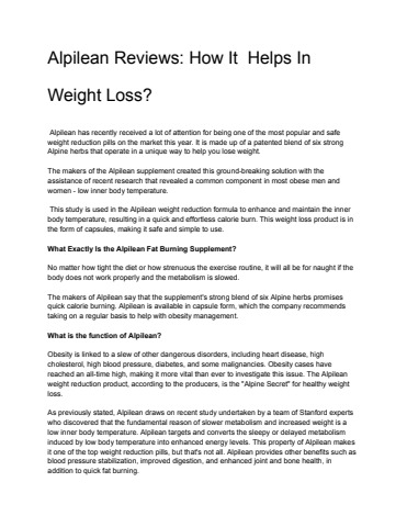 Alpilean has recently received a lot of attention for being one of the most popular and safe weight reduction pills on the market this year.Reviews