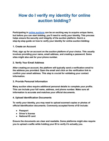 Participating in online auctions can be an exciting way to acquire unique items, but before you can start bidding, you’ll need to verify your identity. This process helps ensure the security and integrity of the auction platform.