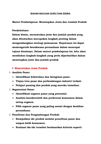 menentukan jenis dan jumlah produk