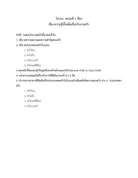 ใบงานหน่วยที่ 1 ความรู้เบื้องต้นเกี่ยวกับงานครัว