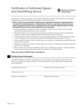 Provide Signatures of the Authorized Signers or Trustees (continued) Sign exactly the way your signature will appear on correspondence and/or checks.