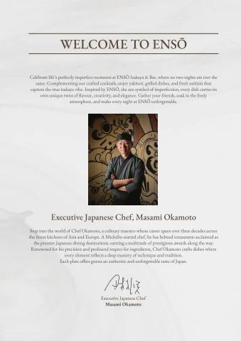 ENSŌ Izakaya & Bar menu for dine in guests.