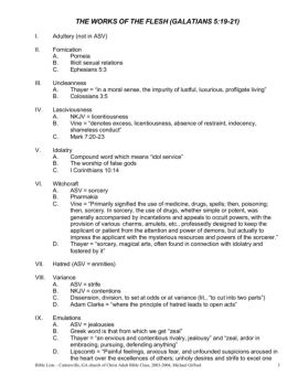 Bible Lists – Cartersville, GA church of Christ Adult Bible Class, 2003-2004, Michael Gifford 3 THE WORKS OF THE FLESH (GALATIANS 5:19 -21) I. Adultery (not in ASV)