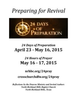 Preparing for Revival 24 Days of Preparation April 23 - May 16, 2015 24 Hours of Prayer May 16 - 17, 2015 nrhbc.org/24pray crosschurchdfw.org/24pray