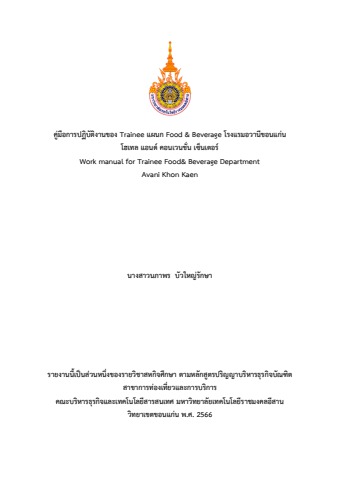 คู่มือการปฏิบัติงานของ Trainee แผนก Food & Beverage โรงแรมอวานีขอนแก่น