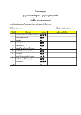 ตารางกิจกรรมชุมนุมนักกีฏวิทยารุ่นเยาว์ฉบับละเอียด