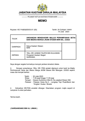MEMO DR PKN SETIA MIRI 25JULAI23