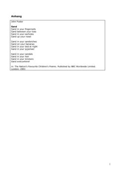 Sand. Sand in your fingernails . Sand between your toes . Sand in your earholes . Sand up your nose! Sand in your sandwiches . Sand on your bananas . Sand in your bed ...