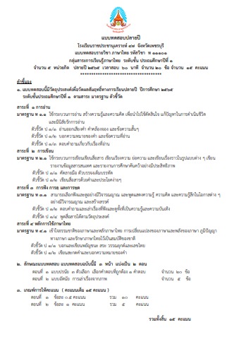 2.ข้อสอบปลายปีวิชาภาษาไทย ป.1 ปี 2565