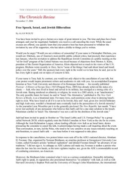 November 17, 2006 Free Speech, Israel, and Jewish Illiberalism By ALAN WOLFE You have been invited to give a lecture on a topic of great interest to you.
