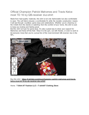 Buy this shirt: https://t-shirtat.com/shop/champion-patrick-mahomes-and-travis-kelce-most-td-16-by-qb-receiver-duo-shirt/