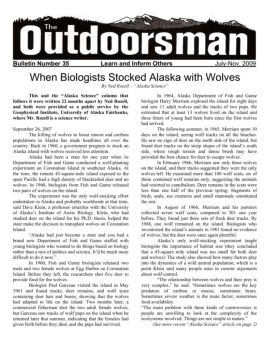 Bulletin Number 35 Learn and Inform Others July-Nov. 2009. When Biologists Stocked Alaska with Wolves By Ned Rozell – “Alaska Science”