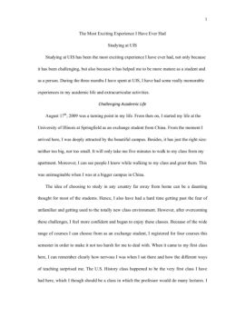 1 The Most Exciting Experience I Have Ever Had Studying at UIS Studying at UIS has been the most exciting experience I have ever had, not only because