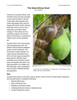 The Giant African Snail Scot Nelson Herbivory by the giant African snail ... snails rasp papaya stem and fruit tissues with bands of stiff, chitinous