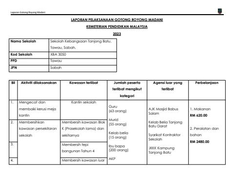 LAPORAN PELAKSANAAN GOTONG ROYONG MADANI