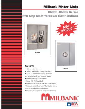 Milbank Meter Main U5890–U5895 Series 320 Amp Meter/Breaker Combinations ODUCT NEW U5891 U5890 Features • 320 Amp continuous • Twin 200A breaker factory installed