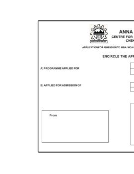 From APPLICATION No : ENCIRCLE THE APPROPRIATE CODE NUMBER Postal stamps if sent by post ANNA UNIVERSITY CENTRE FOR DISTANCE EDUCATION CHENNAI - 600 025.