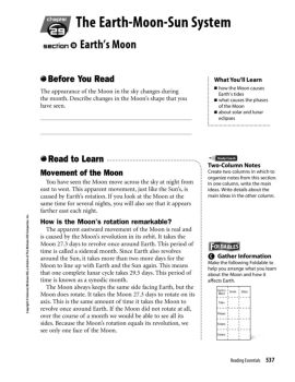 538 CHAPTER 29 The Earth-Moon-Sun System How does the Moon affect Earth? The Moon affects Earth in some obvious and some not-so-obvious ways. You might have noticed ...