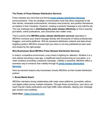 IMCWire Press Release Distribution Services Share Innovation with the World