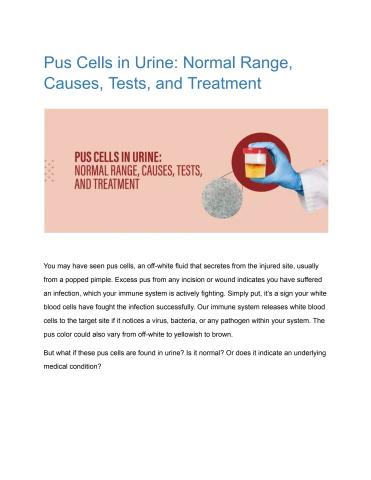 Pus Cells in Urine: Normal Range, Causes, Tests, and Treatment