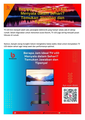 Temukan berapa jam ideal TV LED menyala dalam sehari untuk menjaga performa dan umur panjang perangkat Anda. Dalam artikel ini, kami membahas waktu yang disarankan untuk penggunaan TV LED, dampak penggunaan berlebihan, dan tips praktis untuk merawat TV Anda agar tetap awet. Dapatkan informasi penting dan panduan lengkap untuk memastikan TV LED Anda tetap dalam kondisi optimal dan menghindari masalah teknis. Baca sekarang dan pelajari cara memaksimalkan investasi Anda dalam perangkat hiburan ini!
